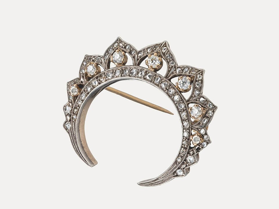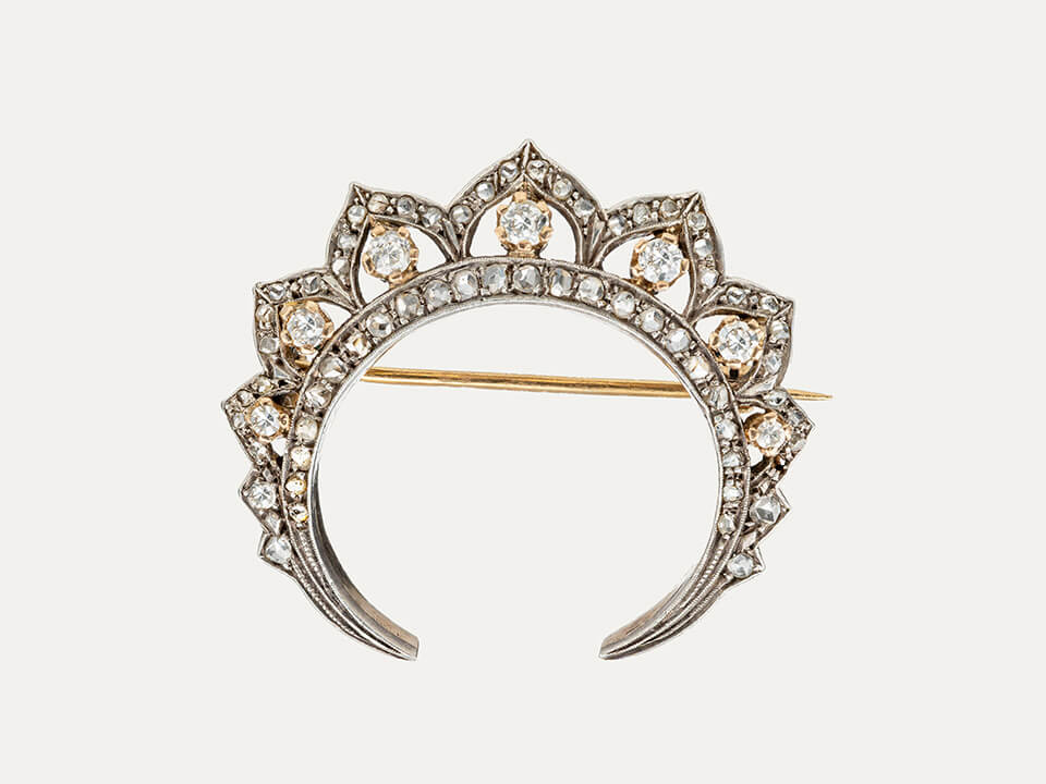 Antique Diamonds, gold and silver “Crescent” brooch