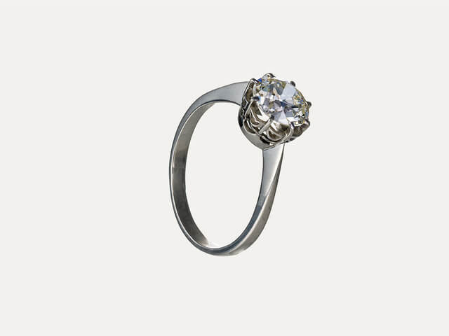 Platinum solitaire ring, set with one brilliant old cut diamond in the center, with 1,799ct (M/R, SI1). SSEF certificate (Swiss Gemmological Institute). Lisbon Hallmark (1938-1984).
