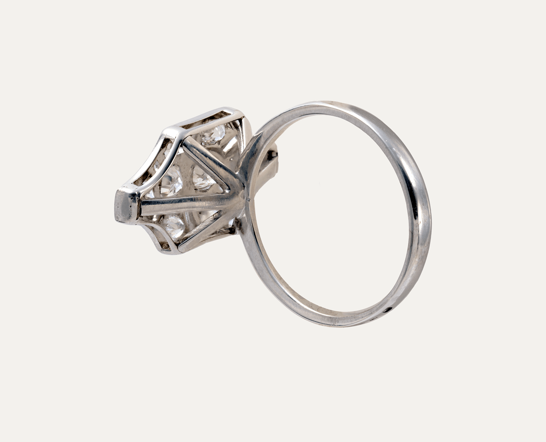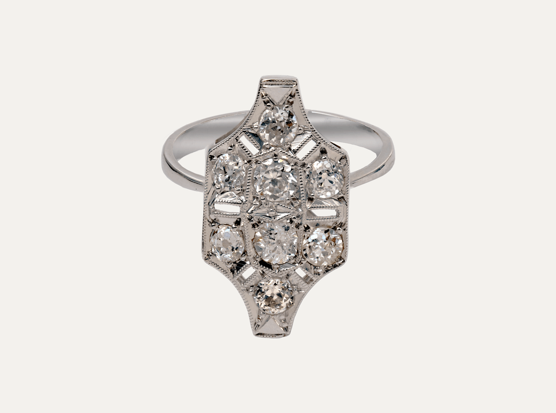 Anel em ouro branco 19,2kt – 800‰, com 8 diamantes talhe brilhante, com cerca de 0.71ct no total.