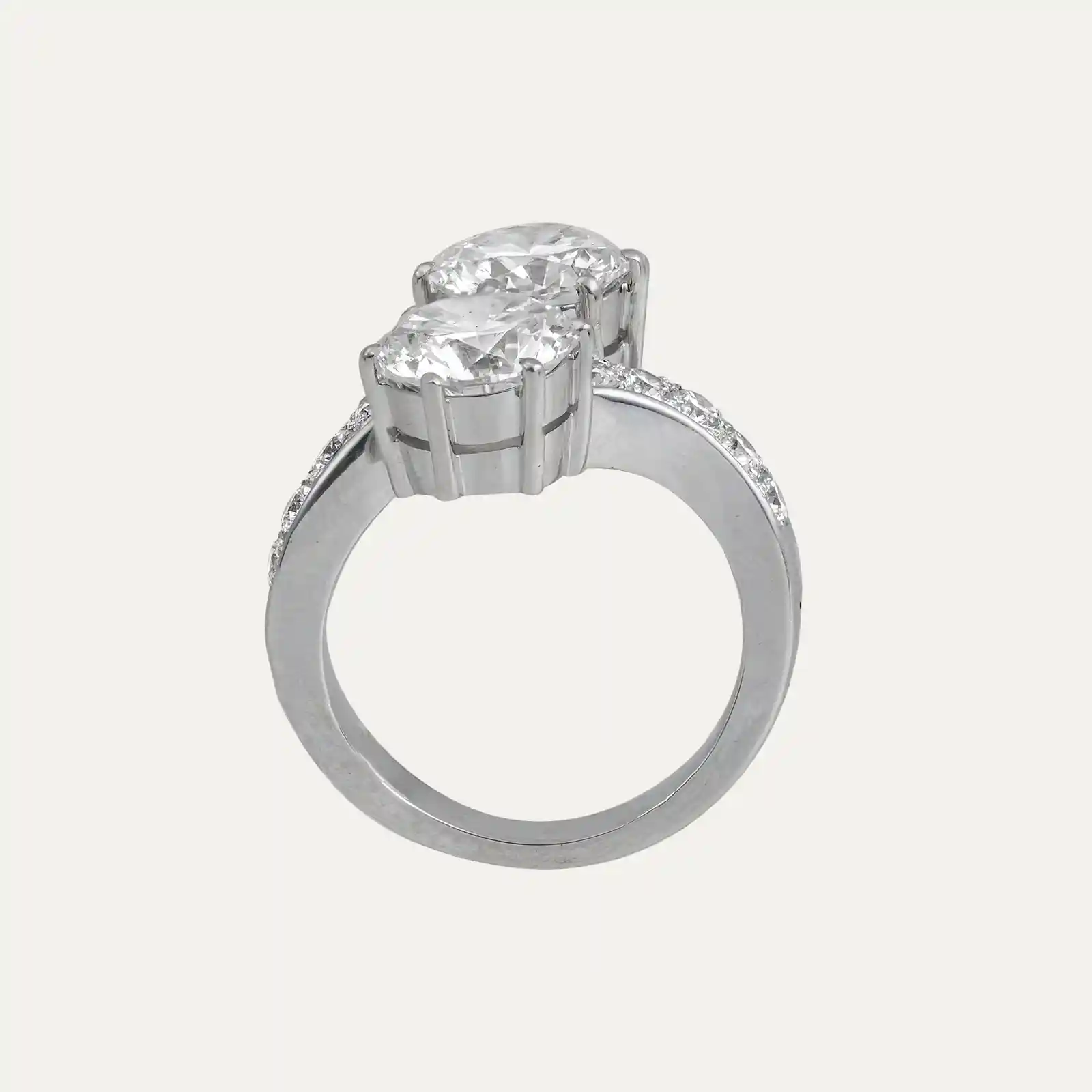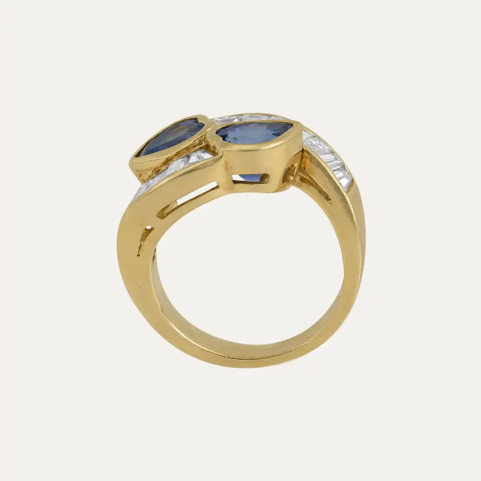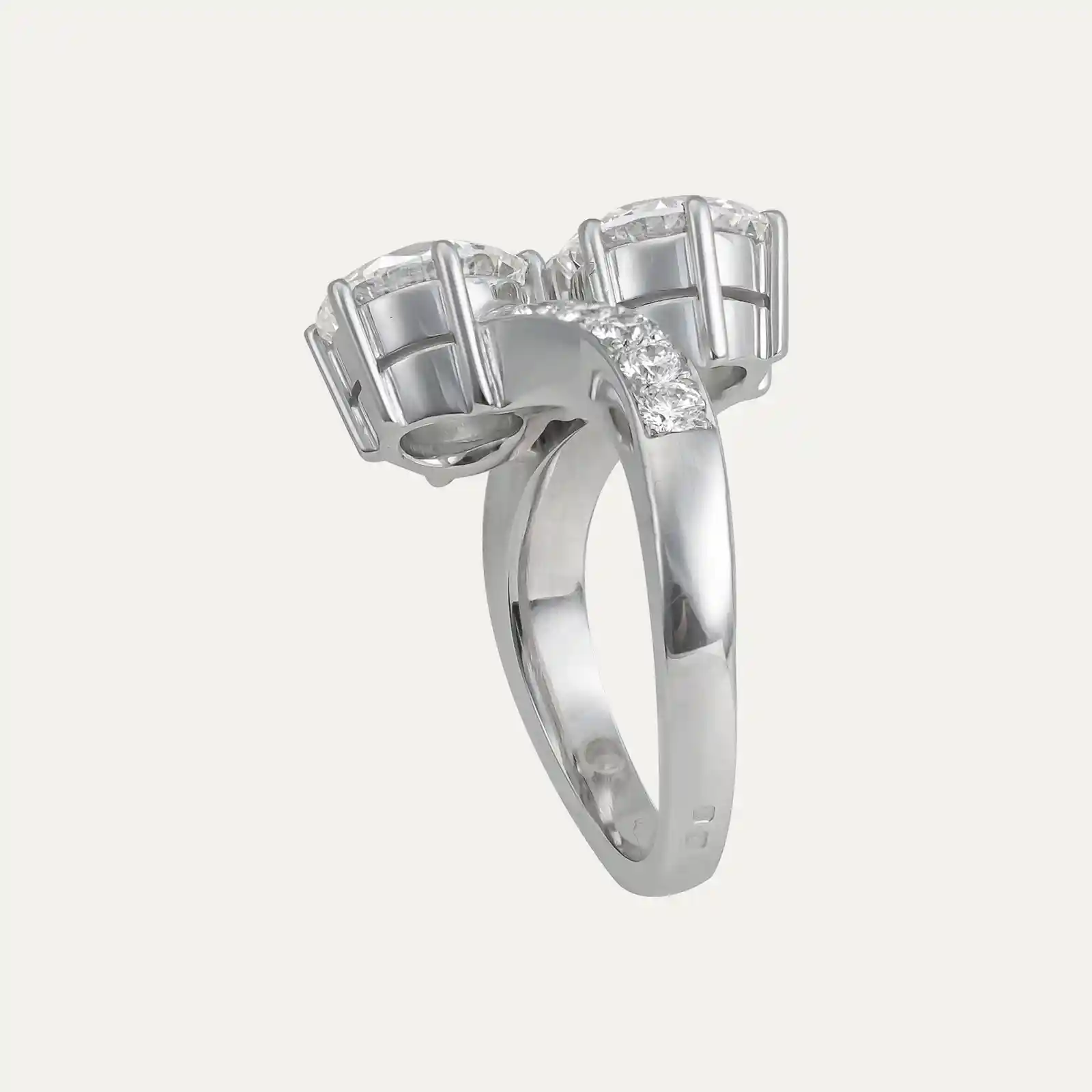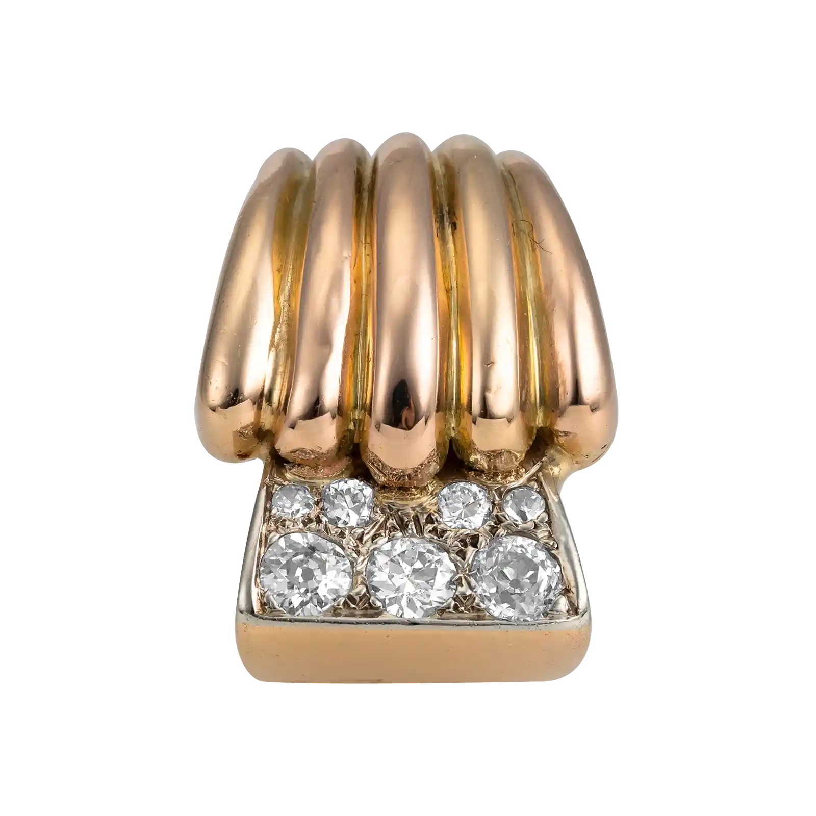 Anel em ouro rosa 19.2kt – 800‰, com formas geométricas. Cravado com 9 diamantes em talhe brilhante com cerca de 0.594ct no total.