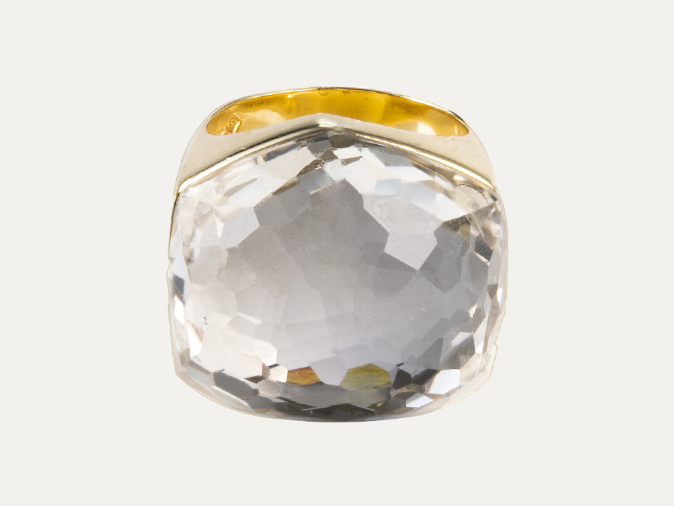 Anel H.Stern, da coleção Diane Von Furstenberg (DVF), em ouro amarelo 18kt – 750‰ com Cristal de Rocha. Com caixa e documentos originais.