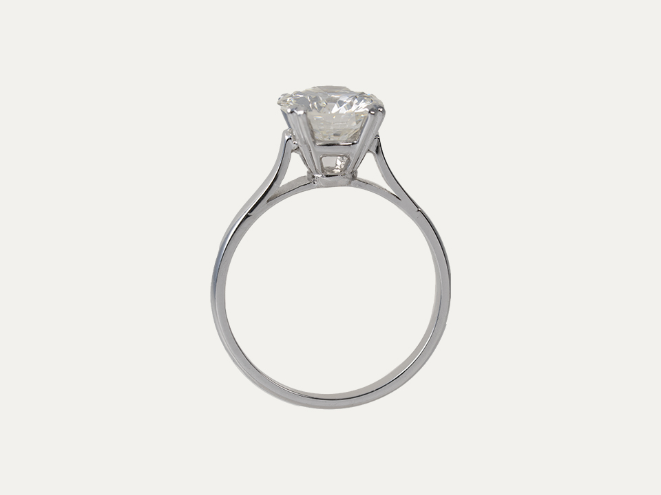 Anel solitário em platina de 900‰ , cravejado com 1 diamante ao centro, de talhe brilhante com 2,2ct, H, VS1. Com certificado emitido por HRD Antwuerp.