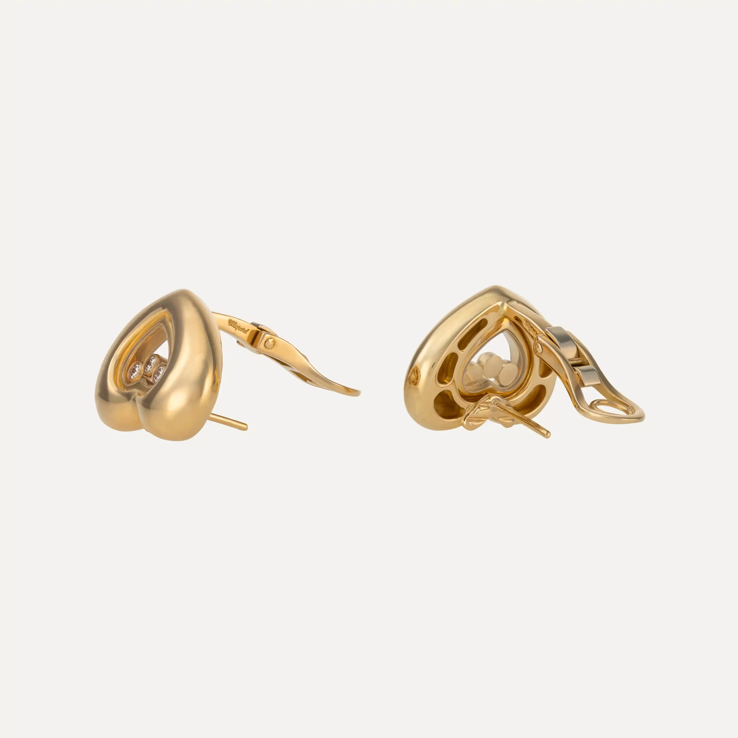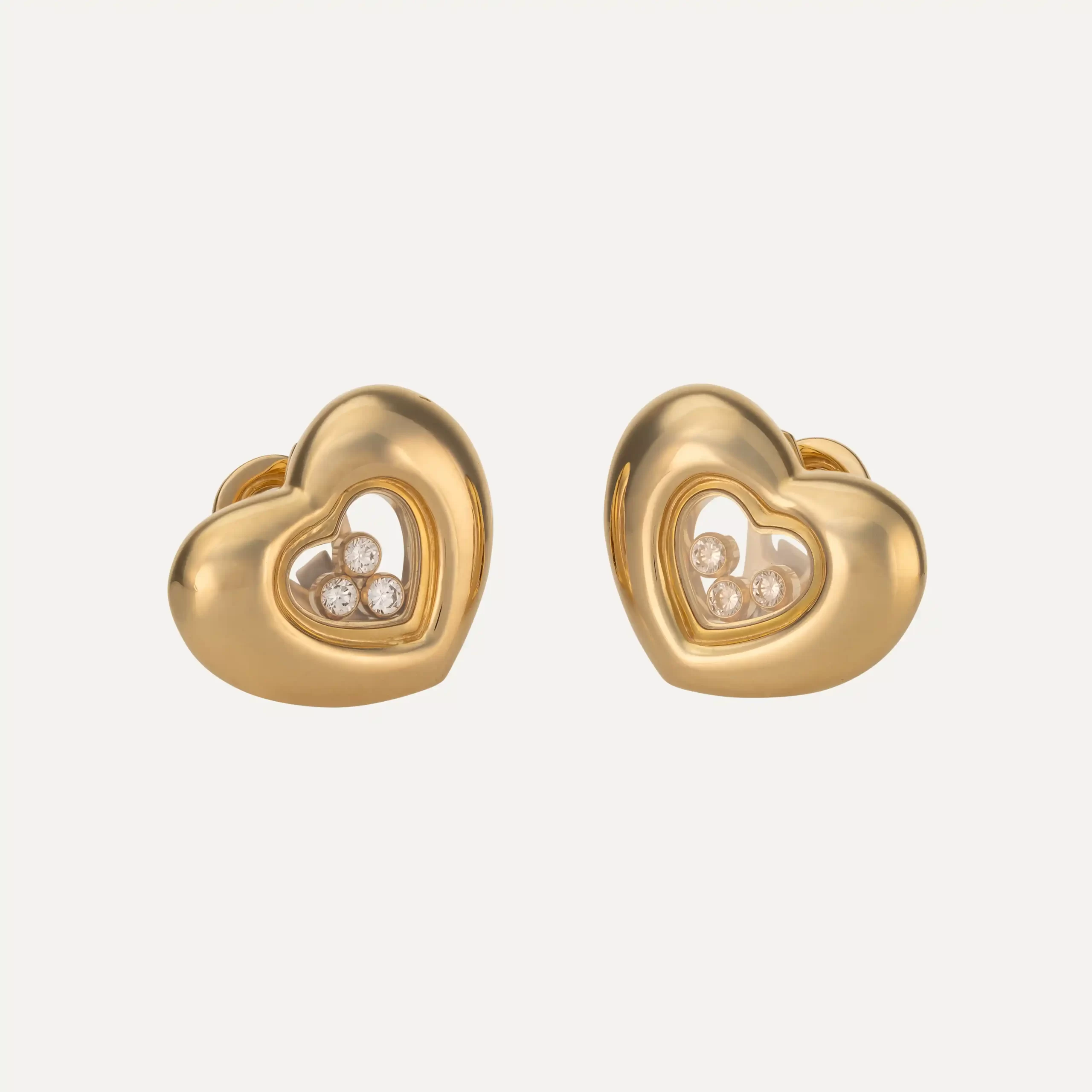 Executados em ouro amarelo 18kt (750‰), apresentam o emblemático coração, no interior do qual 3 diamantes móveis deslizam livremente, criando um jogo de luz subtil e encantador a cada movimento. Um design simultaneamente delicado e expressivo, pensado para mulheres que apreciam joias intemporais com assinatura de prestígio.