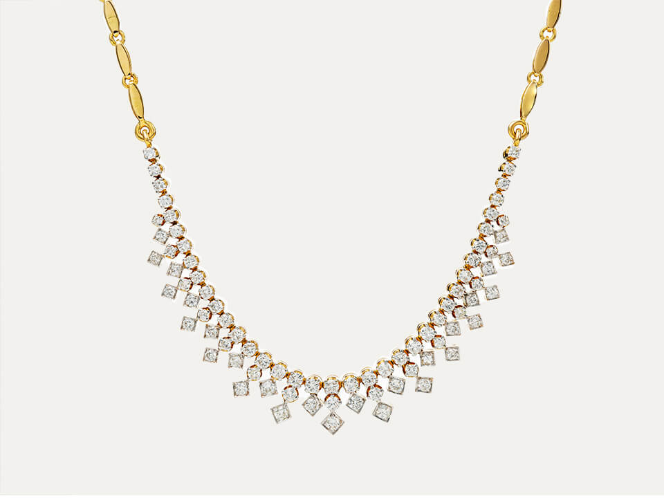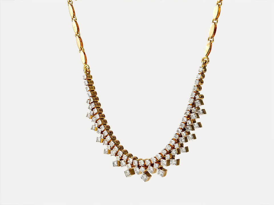 Gargantilha em ouro amarelo 9kt – 375‰ e brilhantes, 79 diamantes em talhe brilhante com cerca de 2,7ct no total.